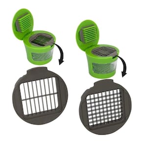 Especificações: - Material: Plástico e Aço Inox - Medida: 08cm x 11,3cm - Lâminas: 02 - Formato: Fatias e Cubinhos - Cor: Verde - Peso: 115 gramas ============================================================ Devido à diferença entre monitores e iluminação diferentes, pode haver variação na tonalidade apresentada no anúncio. Medidas muito aproximadas. Ean: 3250751594144