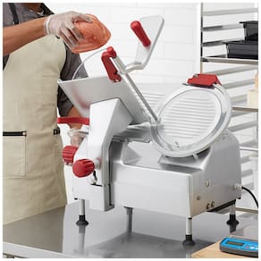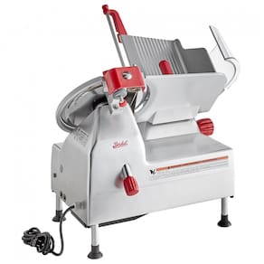 A faca de aço carbono de 30,48 cm do Fatiador Berkel B12ASLC cria fatias uniformes. Com motor de 0,51 CV e mesa de produto de 45, lida facilmente com grandes cortes. Possui afiador de faca de duas pedras na parte superior para manter a lâmina sempre afiada. Com anel de proteção da faca e travas de segurança, é seguro de usar. Desmonta sem necessidade de ferramentas para limpeza fácil. Ideal para operações de médio volume, este fatiador compacto e econômico se encaixa perfeitamente em cozinhas com espaço limitado. Com capacidade de fatiar precisamente , é perfeito para cortes ultrafinos ou mais grossos. Construído com aço inoxidável durável e acabamento em alumínio anodizado para limpeza rápida e durabilidade. Trabalha com ligação elétrica de 110V.