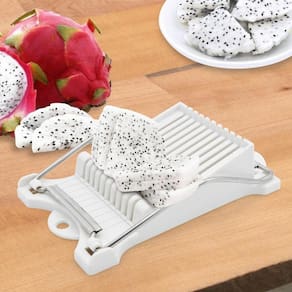 O Fatiador é o item perfeito para incrementar suas receitas, e facilitar seu dia a dia na cozinha. Possui 10 afiados fios de corte em aço inoxidável para fatiar presunto, queijos, ovos cozidos, frutas, vegetais, e outros alimentos. Os fios possuem espaçamento de 1cm entre cada um tornando os tamanhos uniformes, ajudando você a preparar sanduíches, saladas, e outros pratos de dar água na boca. Com rotação de 180, e uma área de corte de 10cm X 10cm.