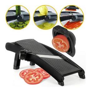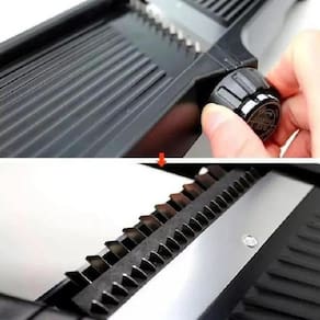 -3 Modelos de Corte: Inclui lâminas intercambiáveis para cortes em fatias finas, médias e grossas. Ideal para preparar vegetais, frutas e outros ingredientes com precisão. - Design Robusto e Durável: Feito com materiais de alta qualidade, garantindo uma longa vida útil e resistência ao uso intenso. - Ajuste de Espessura: Permite ajustes simples e rápidos para obter a espessura desejada em seus cortes, facilitando a preparação de pratos variados. - Segurança e Conforto: Equipado com uma proteção para os dedos e um design ergonômico que proporciona conforto e segurança durante o uso.