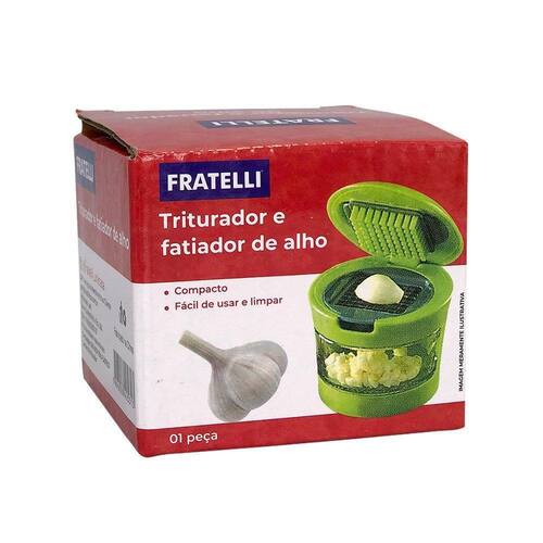 Fatiador triturador de alho legumes cebola com compartimento Contém:01 fatiador de alho com compartimentoFacilite o preparo de suas refeições com este fatiador de alho com compartimentoCom este prático utensílio de preparar alimentos, você pode fatiar o alho de forma rápida, eficiente e sem esforço.Basta colocar o dente de alho no compartimento e deslizar a lâmina afiada sobre ele para obter fatias finas e uniformes em questão de segundos. Além disso, o compartimento integrado permite que você armazene o alho fatiado até o momento de utilizá-lo, mantendo-o fresco e evitando desperdícios.Características do fatiador- possuí compartimento e suporte das lâminas removíveis;- conta com lâminas afiadas e resistentes;- transforma o alho em pedaços minúsculos, liberando todo o seu sabor e aroma;- compacto e ergonômico torna fácil o manuseio e a limpeza;- feito com materiais duráveis e de qualidade, garante a sua longa vida útil;Economize tempo e esforço na cozinha com o fatiador de alho com compartimento.Adquira já o seu e desfrute de fatias perfeitas de alho em suas receitas favoritasInstruções de uso:- basta inserir o produto no topo do recipiente sobre as lâminas e abaixar a tampa para que o alho seja fatiado e caia no recipiente;Especificações:Material: plástico e inoxDimensões: alt.: 8cm x diâmetro : 11,3cm Peso: aprox. 115gCor: verde
