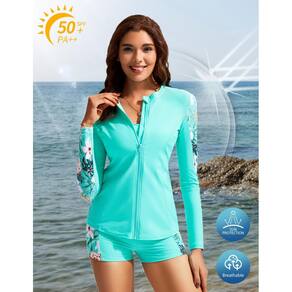 Kate Kasin Rash Guard 3 peças de manga comprida com proteção solar UV embutido com short Material premium e funcional Este maiô de surfe rashguard é feito de tecidos de alta qualidade que são macios, confortáveis, respiráveis e de secagem rápida. Enquanto isso, oferece a você uma boa cobertura corporal suficiente e protege sua pele contra erupções cutâneas, abrasões e raios UV prejudiciais. Você não precisa se preocupar com queimaduras solares se for sensível ao sol Design amigável ao cliente O material amigo da pele garante um uso sem irritação, tudo isso com excelente solidez da cor mesmo quando exposto à água. A camisa de natação com sutiã embutido oferece suporte suficiente e mostra sua silhueta atraente sem transparência. O short mantém suavemente a barriga um pouco. Suaviza as pequenas alças de amor e evita que a sujeira da água do mar entre em suas coxas, garantindo uma experiência de água limpa e confortável Design exclusivo de tops de natação Com recursos ajustáveis e alta elasticidade, esta rashguard oferece um ajuste perfeito e suporte ideal para vários tipos de corpo, tornando-a ideal para esportes aquáticos ativos ou natação de lazer. Alças cruzadas ajustáveis nas costas para maior suporte e contenção do peito, gola em U na frente vazada o torna elegante mesmo quando utilizado sozinho Exercício atraente, cheio de vitalidade O protetor rash guard de gola redonda com estampa floral lateral o torna mais exclusivo e charmoso. Os trajes de surf são justos, que não atrapalham as atividades, podem evitar queimaduras solares, podem ser à prova d'água, podem evitar a imersão na água do mar, podem se manter aquecidos e evitar que o corpo perca a temperatura. Mais detalhes: Tecido principal: 82% poliamida + 18% elastano, tecido contrastante: 85% poliéster + 15% elastano Estação: primavera, verão, outono, inverno Estilo: slim fit, casual, moda, esporte, surfe, rash guard Comprimento da manga: manga comprida Cintura: cintura alta Elástico: elástico Cor: estampa floral - Proteção UV e tecido de secagem rápida: nosso modesto maiô é feito de tecido UPF 50+, garantindo excelente cobertura contra 98% dos raios UV prejudiciais. Se você estiver relaxando na piscina ou praticando esportes aquáticos, isso evitará queimaduras solares. Sua alta elasticidade, durabilidade e material amigo da pele não apenas melhoram o conforto, mas também garantem um ajuste impecável. Além disso, eles secam rapidamente após cada enxágue - Três peças com zíper rash guard feminino: roupas de banho femininas incluem uma camisa rash guard com zíper, uma regata esportiva com sutiãs acolchoados removíveis e shorts de cintura alta, permitindo que você abrace suas atividades aquáticas sem esforço. Atualizamos o cós elástico para um novo, não é muito solto, mas também não apertado. Serve na maioria dos formatos de corpo. Além disso, o zíper melhorado agora possui uma capa protetora para evitar que qualquer desconforto no pescoço seja arranhado - Top de biquíni embutido nas costas cruzadas + shorts: nosso protetor de 3 peças para mulheres é uma excelente escolha para roupas de praia ou piscina. As alças cruzadas altamente elásticas e ajustáveis oferecem suporte aprimorado no peito, garantindo que elas permaneçam no lugar e não sejam transparentes, mesmo molhadas. O top de banho vazado com gola U adiciona um toque feminino e pode ser utilizado sozinho para um visual moderno. Os shorts incluídos seguram suavemente a barriga, suavizando pequenas alças de amor e proporcionando uma silhueta lisonjeira - Adequado para todas as ocasiões: nossas camisetas femininas rash guard são a companhia perfeita para qualquer tipo de esporte, incluindo surf, natação, mergulho, ioga, snorkeling, corrida, stand up paddle, snorkeling, caminhadas e ciclismo, etc - Instruções de lavagem: a estampa não desbota após o uso repetido, garantindo desempenho e prazer duradouros. Para melhores resultados, lave à mão em água fria ou lave à máquina usando um saco de lavanderia. Pendurar para secar. Evite usar alvejante, secar na máquina e passar a ferro