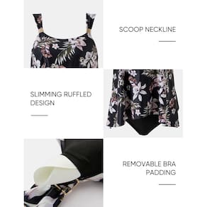 SUUKSESS Tanquíni feminino de cintura alta com babados e controle de barriga, 80 preto floral