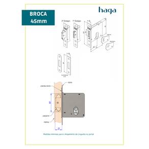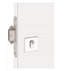 Cilindro : 131 (52mm) Roseta: 524 em zamac Broca: 45 mm Testa e Contra Testa: Cantos retos, fabricadas no material correspondente ao acabamento Contra Testa: Referência 610/620 – 2 furos Indicação de uso: Porta de correr externa