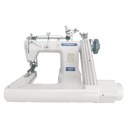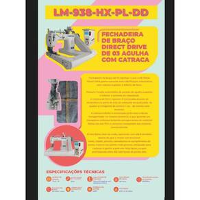 Fechadeira de Braço 3 agulhas, Ponto Corrente, com 2 catracas de Ferro, lubrificação automática e sistema de transporte rolamentado. Possui um conjunto de duas catracas de ferro para transportar materiais pesados. Ideal para costurar jeans e tecidos de grossa espessura. A máquina acompanha aparelho de embainhar, para operações de fechamento lateral entre pernas de calças. A catraca de ferro inferior é conectada junto ao dente para transportar melhor o tecido evitando ondulações no meio da costura. Conjunto de chapa dente e calcador foram projetados para costuras de materiais pesados.