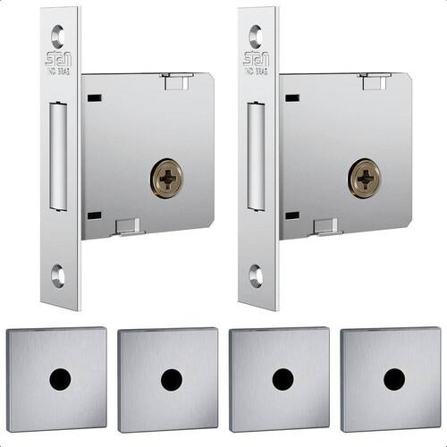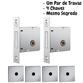 Trava 1004 Acabamento Cromo Escovado - Roseta Quadrada 1 de Aço InoxCaracterísticas:- Mais proteção para seu imóvel e combina com as principais fechaduras Stam;- Ideal para portas de madeira, ferro ou alumínio, portões Consulte um profissional para a instalação ;- 4 chaves tetra, a mesma chave abre ambas travas.Ficha Técnica: Máquina : 1004;Distância de Broca : 40 mm;Aplicação : Tetra Externa;Acessórios : Chave, roseta, contra testa;Composição : Aço ABNT 1010, Zamac, Aço Inox, Latão, Plástico de Engenharia;Roseta : Aço ABNT 1010/1020;Testa : Aço ABNT 1010/1020;Contra Testa : Aço ABNT 1010/1020;Linha : Auxiliar;Embalagem : Caixa 1 PAR .