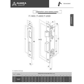 Especificações Técnicas: Material: AÇO/ZAMAC Linha: FECHADURA SERRALHEIRO Máquina: 22 mm Tipo: ESPELHO Uso: EXTERNA Fabricante: Aliança Modelo: F 2400 IP