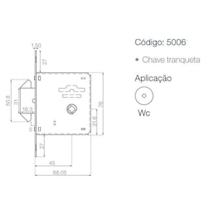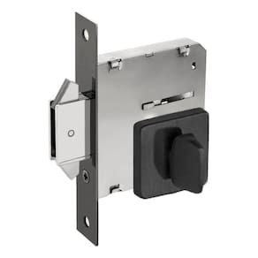 Fechadura Arouca Bico Duplo, para porta de Correr de Banheiro, com acabamento quadrado.
