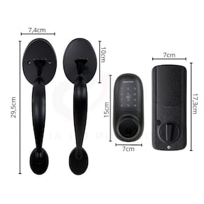 Material: Zamak / Aço Tipo instalação: Embutida Espessura de porta: 35 a 50mm Broca padrão: 60 a 70mm Regulagem para encaixe do miolo Alimentação: 4 pilhas AA Não acompanha o produto