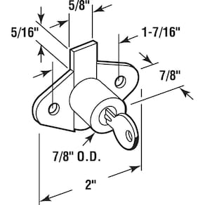 - DIMENSÕES — Esta fechadura para gabinete possui um parafuso chanfrado e se encaixa em painéis de até 7/8 polegadas de espessura