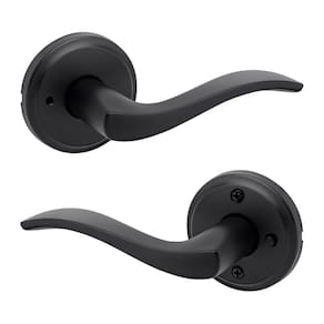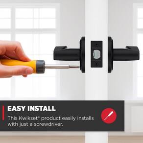 Kwikset Sedona Maçaneta de porta de privacidade interior com fechadura, maçaneta de porta para banheiro e quarto, preto fosco reversível alavanca de bloqueio de botão sem chave, com proteção Microban