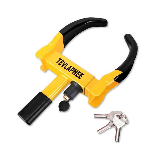 -?FORTE E DURÁVEL?:O corpo da trava da braçadeira de roda é feito de chapa de aço de alta resistência. Cilindro de bloqueio em forma de meia-lua, em comparação com outro cilindro de bloqueio geral, seu desempenho anti-roubo é mais forte! A superfície da braçadeira é revestida de forma macia, o que não danificará a roda do seu carro!