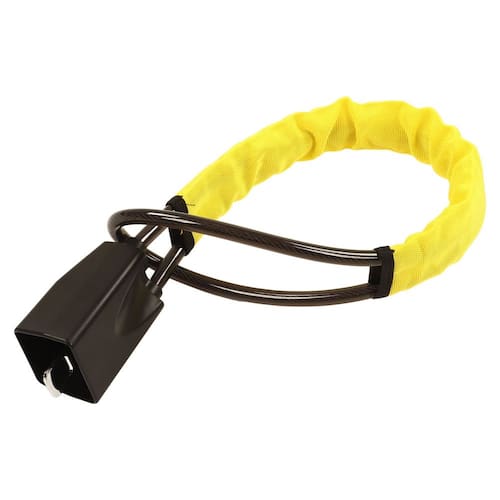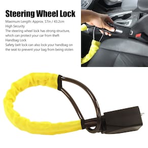 -?Alta segurança?Fechadura de bolsa de cinto,A trava do volante tem uma estrutura sólida, que pode proteger seu carro contra roubo. O amarelo brilhante é um claro impedimento para pessoas más.