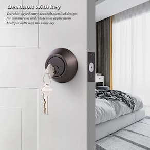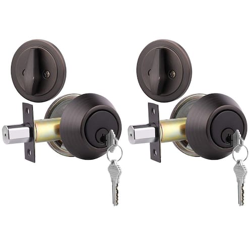 Pacote com 2 fechaduras de cilindro único com chave e botão de giro interno acabamento em bronze polido a óleo O design de aparência moderna da fechadura da porta seria muito quente. Este parafuso de hardware de porta pode ajudá-lo a criar uma aparência elegante e completa Feito de design moderno, a maçaneta da porta é para uso prolongado Vem com parafusos e especificações de instalação que são fáceis de instalar O acabamento fino garante que os cadeados sejam perfeitos para o seu uso A embalagem inclui: 2 travas de cilindro único 6 teclas (a mesma) trinco placa de ataque parafusos. Instruções de uso: - Fechaduras de fechadura de cilindro único de entrada com chave. Acabamento em bronze polido a óleo, 2 fechaduras de cilindro único com chave de um lado. 2 fechaduras com a mesma chave, 6 chaves para os 2 parafusos - A fechadura funciona com uma chave no exterior e um polegar no interior. Para uso em portas externas onde o bloqueio e a segurança são necessários - Fácil de instalar com uma chave de fenda Phillips. Ajuste em portas pré-perfuradas padrão existentes. utilizado em portas destros ou canhotos - Trava ajustável de 60 mm ou 70 mm de espessura. A placa de trava é quadrada e não pode ser removível - Atende aos padrões de segurança residencial grau 3. Testado pela ANSI para atender aos padrões de segurança residencial. Feito de aço inoxidável de alta qualidade, não enferruja ou deforma