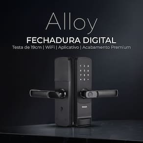DESIGN SOFISTICADO E ALTA RESISTÊNCIA Fabricada em liga de alumínio com acabamento premium e painel de vidro temperado touch, a Alloy combina durabilidade com um visual elegante, proporcionando mais segurança sem abrir mão da estética da sua porta.