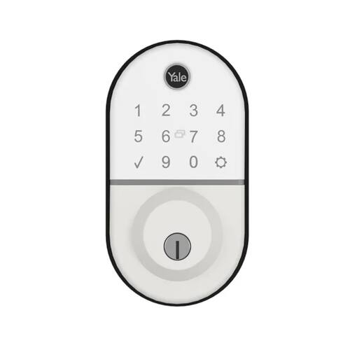 Fechadura Digital Compact Branca Rolete - Yale A Fechadura Digital Compact da Yale é uma opção moderna e segura para quem busca praticidade e tecnologia. Obs: Somente a lado externo da fechadura (painel com display) pode ficar exposto ao tempo. - Espessura de Porta: 35 a 70mm - Até 250 Senhas - Até 250 Biometrias - Até 250 Tags - Guia de Voz 3 idiomas: Inglês, Espanhol e Português - 4 Pilhas AA alcalinas autonomia de até 3.600 acionamentos - Resistente a intempéries. Somente a lado externo da fechadura (painel com display) pode ficar exposto ao tempo. - Garantia do fabricante: 24 meses - Tipos de abertura: Senha numérica, biometria, cartão e chave de segurança