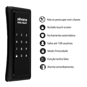 Ficha Técnica Uso / Aplicação: Portas de Madeira ou Alumínio de 30 a 50 mm de espessura. Vantagens: Função Senha Falsa; Abertura por senha (4 a 8 dígitos); Fechamento Automático; Alimentação de emergência 9V; Modo privacidade; Fácil instalação; Design moderno e compacto; Alarme de arrombamento; Modelo de sobrepor para não usinar a sua porta; Composição: Aço Carbono, Alumínio, Componentes elétricos, Zamac, Plástico de engenharia. Desempenho: Salvamento de até 199 usuários Garantia: 2 anos Cor / Acabamento: Preto Tamanhos Disponíveis: Único