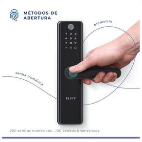 Fechadura Digital de Embutir SAX ESF-DE5100I com Câmera e Biometria Eleve a segurança e a sofisticação da sua residência ou empresa com a Fechadura Digital SAX. Com múltiplos métodos de abertura e funcionalidades exclusivas, ela é a escolha ideal para quem busca praticidade sem abrir mão da proteção. Você é a chave A Fechadura SAX oferece diversas formas de acesso para se adaptar ao seu dia a dia: Biometria: Até 100 registros para desbloqueio rápido e seguro. Senha Numérica: Cadastre até 200 senhas personalizadas. Tag Adesiva e Chaveiro: Utilize até 200 tags para maior conveniência. Aplicativo Elsys Casa+: Controle total na palma da mão. Função Exclusiva Instashot Quando a campainha é acionada, a fechadura captura instantaneamente uma foto do visitante e envia para o seu smartphone via aplicativo Elsys Casa+. Permite liberar o acesso remotamente, aumentando a segurança e o controle sobre quem entra em seu espaço. Tecnologia e Versatilidade Proteção IP55: Resistente à água e poeira, ideal para áreas internas e externas. Alarme Sonoro de Violação: Em caso de tentativa de arrombamento, um alarme é acionado para alertar e desencorajar intrusos. Função Convidado: Crie senhas temporárias que expiram quando você decidir, perfeito para visitas ou prestadores de serviço. Função Senha Segura: Adicione números extras antes ou depois da senha para aumentar a segurança.