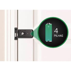 Alimentação por pilhas: Alimentação por 4 pilhas alcalinas AA com duração média de 1 ano (até 10 acessos diários).