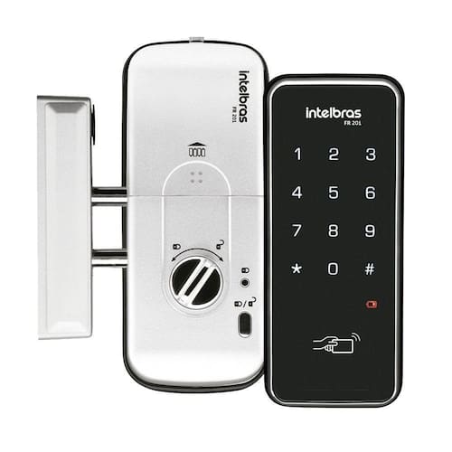A fechadura digital de sobrepor FR 201 é utilizada para residências, apartamentos e escritórios. Possui como métodos de identificação senha numérica, através de um teclado de 12 teclas, e chaveiro de proximidade. Sua instalação é simples e a alimentação é feita por 4 pilhas AA. Até 100 chaveiros e 4 senhas A FR 201 pode ser aberta via senha numérica (cadastro de até 4 senhas) pelo teclado touch screen ou chaveiro RFID (cartão de proximidade). Função Senha protegida Com essa função a segurança é ainda maior. Ela dificulta que descubram as senhas pelas marcas de digitais deixadas no teclado da fechadura. Quando habilitada, fornece números aleatórios a serem digitados pelo usuário após a digitação da senha. Baixo consumo de bateria Alimentação por 4 pilhas alcalinas AA, com autonomia de 1 ano. Sinalização de pilha fraca com até 1 semana de antecedência. Com até 10 acessos diários Alarme antiarrombamento Um aviso sonoro (1 minuto) é acionado na própria fechadura quando negadas 5 tentativas consecutivas de abertura ou na tentativa de violação. Função Não perturbe A fechadura oferece mais privacidade ativando a função Não perturbe. Com ela é possível desabilitar a abertura da fechadura pelo lado de fora. Conteúdo da embalagem 1 unidade interna 1 unidade externa 1 batente 4 pilhas alcalinas AA 1 kit instalação 1 gabarito de fixação 6 calços para suporte das trancas 1 guia do usuário 5 chaveiros de proximidade Frente: Altura 16,3 cm, Largura 6,8 cm, Comprimento 2,0 cm. Verso: Altura 17,15, Largura 7,28 cm, Comprimento 3,8 cm. Acabamento do Marco: Altura 11,7 cm, Largura 2,7 cm, Comprimento 2,6 cm.