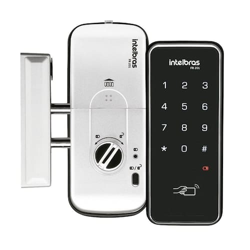 A fechadura digital de sobrepor FR 201 é utilizada para residências, apartamentos e escritórios. Possui como métodos de identificação senha numérica, através de um teclado de 12 teclas, e chaveiro de proximidade. Sua instalação é simples e a alimentação é feita por 4 pilhas AA. Até 100 chaveiros e 4 senhas A FR 201 pode ser aberta via senha numérica cadastro de até 4 senhas pelo teclado touch screen ou chaveiro RFID cartão de proximidade . Função Senha protegida Com essa função a segurança é ainda maior. Ela dificulta que descubram as senhas pelas marcas de digitais deixadas no teclado da fechadura. Quando habilitada, fornece números aleatórios a serem digitados pelo usuário após a digitação da senha. Baixo consumo de bateria Alimentação por 4 pilhas alcalinas AA, com autonomia de 1 ano. Sinalização de pilha fraca com até 1 semana de antecedência. Com até 10 acessos diários Alarme antiarrombamento Um aviso sonoro 1 minuto é acionado na própria fechadura quando negadas 5 tentativas consecutivas de abertura ou na tentativa de violação. Função Não perturbe A fechadura oferece mais privacidade ativando a função Não perturbe. Com ela é possível desabilitar a abertura da fechadura pelo lado de fora. Conteúdo da embalagem 1 unidade interna 1 unidade externa 1 batente 4 pilhas alcalinas AA 1 kit instalação 1 gabarito de fixação 6 calços para suporte das trancas 1 guia do usuário 5 chaveiros de proximidade Frente: Altura 16,3 cm, Largura 6,8 cm, Comprimento 2,0 cm. Verso: Altura 17,15, Largura 7,28 cm, Comprimento 3,8 cm. Acabamento do Marco: Altura 11,7 cm, Largura 2,7 cm, Comprimento 2,6 cm. Homologação Anatel: 057191600160 Ean: 7896637674447