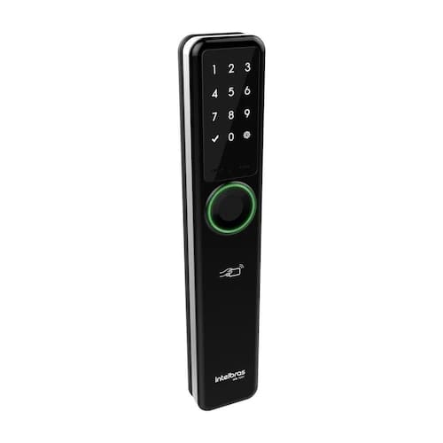 Fechadura Digital Intelbras Smart IFR-7001 - Preto Fechadura Digital Intelbras Smart IFR-7001 - Preto A fechadura smart de embutir sem maçaneta IFR 7001 faz parte do ecossistema IZY de casa inteligente da Intelbras. Através da sua fechadura smart, é possível gerar comandos para abrir cortinas, ligar ou apagar luzes, visualizar imagens de câmeras, ligar e desligar equipamentos e muito mais. A IFR 7001 conta com abertura por até 9 senhas, até 100 tags de proximidades, até 100 biometrias digitais e remotamente através do app IZY. Sua alimentação é feita por 4 pilhas AA com duração média de 10 meses considerando 10 acessos diários . A fechadura smart IFR 7001 conta com funções como travamento automático, função não perturbe, gerenciamento de acessos e usuários de forma totalmente remota necessário aquisição de um hub de automação IZY ICA 1001 para habilitar as funções de casa inteligente e app - item vendido separadamente . Com mortise padrão ABNT 14913 a IFR 7001 possui uma das instalações mais fáceis do mercado e conta com mecanismo com trinco rolete, ideal para portas pivotantes com puxadores. Características técnicas Cadastro de até 9 senhas Cadastro de até 100 biometrias Cadastro de até 100 tags Acompanha 2 chaves físicas Fechadura de embutir para portas de 30mm a 60mm Mortise de fácil troca: padrão ABNT 14913 com trinco rolete Biometria de alta precisão Alimentação por 4 pilhas AA com duração média de 10 meses 10 acessos diários Função Não Perturbe Função Travamento Automático Alerta de bateria fraca Abertura remotamente pelo app Izy Gerenciamento de acessos pelo app senhas, relatórios de entrada, datas ; Conexão com diversos dispositivos da família Izy Compatível com Amazon Alexa e outros dispositivos do mercado Necessário aquisição do hub de automação ICA 1001 vendido separadamente Material da Porta: Metal Freqência de operação: Mifare Modelo do produto: IFR 7001 Cor: Preto Quantidade pacote: 01 Comprimento do produto: Módulo Interno: 4,8 cm Módulo Externo: 2,5 cm Largura do produto: Módulo Interno: 5,0 cm Módulo Externo: 5,0 cm Altura do produto: Módulo Interno: 27,0 cm Módulo Externo: 27,0 cm Peso do produto: Módulo Interno:0,458 Kg Módulo Externo: 0,474 Kg Local de uso: Uso interno Modo de Acesso: Biometria, Chaveiro de aproximação, Senha, Chave, Aplicativo Conteúdo da embalagem 01 fechadura digital 04 pilhas 01 gabarito de instalação 01 kit fixação 02 chaves 03 tags adesivas 03 tags de proximidade 01 manual de instalação 01 manual do usuário Cor: Preto de 12 meses contra defeitos de fábrica.