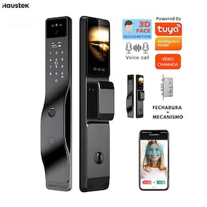 Fechadura digital, eletrônica, inteligente, totalmente automática com função de abertura por reconhecimento facial, impressão digital, cartão, senha touch screen, chave, Wi-Fi, aplicativo Tuya ou Smart Life com câmera.