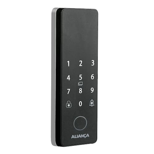 Fechadura Digital Iris Plus sobrepor para Porta de Vidro Preto Fosco Aliança