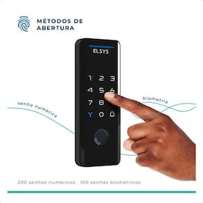 O modelo Tecno oferece uma variedade de recursos de acesso, incluindo a abertura por senha, com capacidade para armazenar ate 10 senhas diferentes. Alem disso, conta com a funcionalidade de biometria, podendo armazenar ate 100 biometrias diferentes. A fechadura ainda acompanha 3 tags para acesso, adicionando uma camada extra de conveniencia. Notavelmente, o produto e equipado com Wi-Fi, permitindo a conexao e o controle remoto para maior comodidade. Vale destacar que a alimentacao e feita por pilhas, garantindo um funcionamento continuo e confiavel.