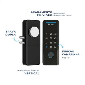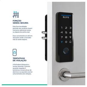 "Apresentamos a Fechadura Eletronica Digital ESF-DS4100V, um produto marcado pela inovacao e seguranca. Com design sofisticado na cor preto, esta fechadura digital da Elsys e a solucao perfeita para garantir a protecao e o controle de acesso ao seu espaco. Com dimensoes de 63x33x170 mm e peso de 1,20 Kg, o produto apresenta uma instalacao de sobrepor, perfeita para portas internas, pivotantes e de entrada, com espessura variando entre 30 a 150 mm.
