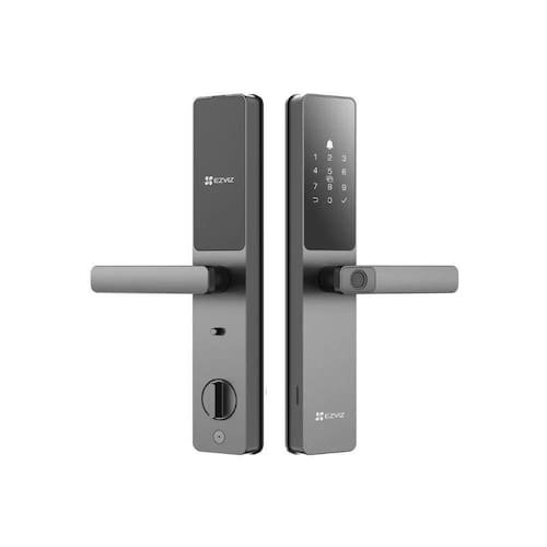 Você pode destravar a fechadura usando impressão digital, senha, cartão de proximidade, chave mecânica (em emergências) ou smartphone via Bluetooth ou Wi-Fi usando o aplicativo EZVIZ.