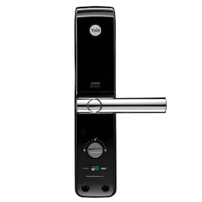 A Fechadura Digital YMF 40A vem com maçaneta reversível e dispensa uso de chaves, com opções de abertura por biometria, senha numérica e por aplicativo, quando utilizada em conjunto com módulo Zigbee e o Hub Yale Connect (acessórios vendidos à parte)