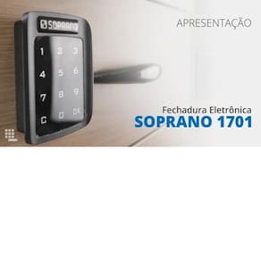 Fechadura Eletrônica Digital Soprano 1701 Para Armário Gaveta A fechadura digital para móveis modelo 1701 com puxador é sofisticada e de fácil e prática utilização. É indicada para uso em armários em geral uso exclusivo, coletivos e guarda volumes e gavetas em geral escritórios, dormitórios, closets . Além disso, oferece segurança para guardar objetos pessoais e documentos, pois é acionada por meio de senhas.- pode ser instalada em gavetas e portas de armários de aço ou madeira;- abertura com senha digital de 4 a 15 dígitos;- teclado digital touch screen;- fechamento automático da lingueta após 5 segundos;- opção senha modo público: senha temporária que funcionará somente 1 vez;- opção senha falsa: introduzida com tecnologia antirroubo, permite inserir qualquer sequência numérica antes ou depois da senha real evitando que ela seja descoberta.- aviso sonoro quando a senha for digitada incorretamente, a fechadura ficará inoperante caso a senha for digitada 4 vezes incorretamente;- alerta sonoro e visual de bateria fraca;- possui entrada micro usb para alimentação externa em caso de emergência por falta de bateria cabo usb acompanha o produto ;- alimentação: 3 pilhas aaa não acompanham o produto .Itens inclusos:1 fechadura digital para móveis 1701 com puxador da soprano;1 kit de acessórios para instalação composto por 2 parafusos métricos, 5 parafusos auto atarraxantes, 1 parafuso para fixar a tampa do alojamento das pilhas e 1 batente de travamento ;1 cabo usb.