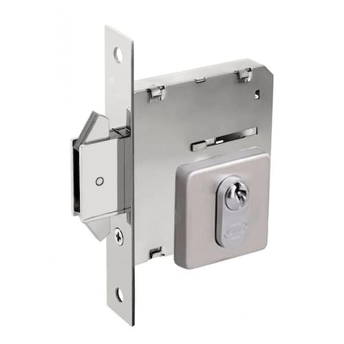 fechadura lingueta expansiva tipo bico de papagaio, com dupla trava e lingueta conjugada, ideal para portas de correr. As máquinas são blindadas, protegendo o mecanismo interno e proporcionando alto desempenho e durabilidade. Ao especificar um produto, verifique a sua classificação e confirme se atende as suas necessidades. Componentes incluídos na embalagem: código: 1006/098-z-ie 01- máquina de 45mm 01- cilindro 01- par de rosetas 02- chaves