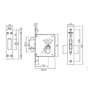 Espessura da porta: mínima 25mm e máxima 40mm Conjunto: 5006 Linha: trava expansiva Material: zamak e inox Acabamento: antique