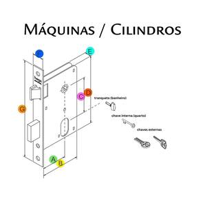 Acabamento: Cromada Roseta: 425 em Aço Carbono Cilindro:131 (52mm) Broca: 23mm ContraTesta: Ref. 1765 - 2 furos A distância da broca está dimensionada por dentro da testa