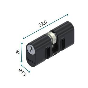 Acabamento: Resinado Preto Roseta: 426 em Aço Carbono Cilindro: 131 (52mm) Broca: 23mm ContraTesta: Ref. 1765 - 2 furos A distância da broca está dimensionada por dentro da testa
