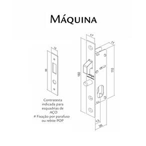 Acabamento: Resinado Branco Roseta: 425 em Aço Carbono Cilindro: 131 (52mm) Broca: 13 mm Contra Testa: Ref. 1764 - 2 furos ContraTrinco: em Zamac Obs: ContraTrinco indicado para esquadrias de Alumínio - Ajustado por parafuso