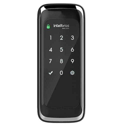 A fechadura smart de sobrepor MFR 1001 faz parte do ecossistema Mibo de casa inteligente da Intelbras. Através da sua fechadura smart, é possível gerar comandos para abrir cortinas, ligar ou apagar luzes, visualizar imagens de câmeras, ligar e desligar equipamentos e muito mais. A MFR 1001 conta com abertura por até 100 senhas e remotamente através do app Mibo. Sua alimentação é feita por 4 pilhas AA com duração média de 10 meses (considerando 10 acessos diários). A fechadura smart MFR 1001 conta com funções como travamento automático, função não perturbe, gerenciamento de acessos e usuários de forma totalmente remota (necessário aquisição de um hub de automação Mibo para habilitar as funções de casa inteligente e app - item vendido separadamente). Características Tipo: Fechadura Digital Tipo de Tranca: Travamento Automático Tipo de Instalação: Sobrepor Quantidade de Senhas: 100 senhas Possibilidade de Automação Indicado para Porta com Espessura: 25 a 50 mm Especificações Técnicas Modelo: MFR 1001 / 4670028 Alimentação: 6 Vdc (4 Pilhas AA Alcalina) Cor: Preto EAN: 7899298675501 Garantia: 24 meses Dimensões e Peso Dimensões do produto sem embalagem (AxLxP): 89x166x38 mm Dimensões do produto com embalagem (AxLxP): 265x85x205 mm Peso do produto sem embalagem: 0,97 Kg Peso do produto com embalagem: 1,43 Kg Itens Inclusos 01 Fechadura Digital 04 Pilhas AA 01 Gabarito de Instalação 01 Kit Fixação 01 Manual de Instalação 01 Manual do Usuário