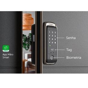 A MFD 2020 pode ser aberta por biometria (impressão digital), senha numérica, tag RFID, aplicativo Mibo Smart ou chave mecânica de emergência.