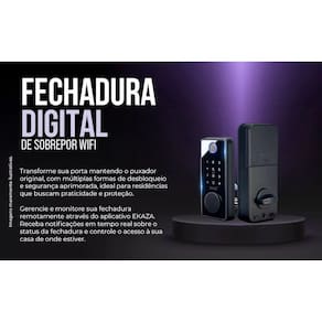 Fechadura Inteligente WiFi Sobrepor Biometria Tag Ekaza Tuya Fechadura Inteligente Wi-Fi de Sobrepor Ekaza - Controle e Segurança Avançados Proteja e automatize sua casa com a Fechadura Inteligente Wi-Fi EKDS-T328 da Ekaza. Com um design robusto e tecnologia avançada, ela oferece segurança, praticidade e controle completo do acesso ao seu ambiente interno. Principais Características Acesso Remoto: Controle e monitore a fechadura de qualquer lugar via aplicativo Tuya ou Ekaza. Múltiplos Métodos de Desbloqueio: Código de Acesso: Crie e gerencie senhas personalizadas para familiares e visitantes. Cartões RFID: Acesso rápido e prático com os cartões inclusos. Chave Física: de desbloqueio em situações de emergência. Segurança Avançada: Receba notificações em tempo real sobre tentativas de acesso forçado. Especificações Técnicas Marca: Ekaza Modelo: EKDS-T328 Conexão: Wi-Fi 2.4 GHz Material: Construção robusta e durável Alimentação: Pilhas Compatibilidade: Totalmente integrado aos sistemas de automação residencial via app Tuya ou Ekaza Direção de abertura: Direita/Esquerda Ambiente de uso: Interno Espessura mínima da porta recomendada: 25 mm Espessura máxima da porta recomendada: 50 mm Quantidade de cartões suportados: 100 Quantidade de códigos numéricos suportados: 100 Homologação Anatel Nº 40042011765 Quantidade máxima de impressões digitais: 100 Com indicador de bateria fraca Aplicativos: Ekaza, Android, Tuya, Smart Life e NovaDigital. : 12 meses contra defeitos de fabricação da Ekaza. Conteúdo da Embalagem 1x Fechadura Inteligente EKDS-T328 2x Cartões RFID 1x Manual de Instruções 1x Chave Física Controle e Monitoramento Inteligente A Fechadura EKDS-T328 é a escolha ideal para quem busca segurança aliada à praticidade. Com múltiplas formas de acesso e monitoramento em tempo real, ela é perfeita para residências, escritórios e estabelecimentos comerciais. Transforme a segurança do seu ambiente com a tecnologia da Fechadura Inteligente Ekaza. Garanta já a sua e proteja seu lar com eficiência e modernidade Necessário ter ou providenciar a rede Wi-fi 2,4GHz, com alta capacidade interna para administração de dispositivos e com boa distribuição do sinal no local. Com a oscilação na conexão do dispositivo, pode acarretar falha na resposta aos comandos via aplicativo, assistentes de voz e não execução de rotinas automáticas agendadas . Consulte um técnico da sua operadora.