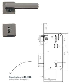 A Fechadura Interna Dama possui maçaneta e roseta em Zamac, garantindo durabilidade e resistência. Sua máquina é do modelo 6040/40 e a distância de broca é de 40mm. O acabamento cromado confere um toque de sofisticação ao produto.