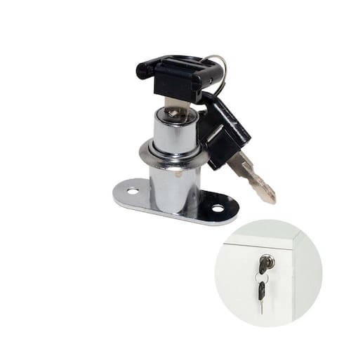Fechadura para portas de correr, para armários e móveis em geral.Fechadura para móveis gavetas, além de sua funcionalidade principal de fechamento, complementam os variados projetos de móveis que necessitam de segurança e privacidade.CARACTERÍSTICAModelo: Pino avançoMaterial: AçoAcabamento: NiqueladoPosição de fechamento: Aperto no tamborSistema de fechamento: 6 pinosMontagem: fixação com parafusoDimensão do tambor: 22 mm comprimento x 19 mm diâmetroPosição de fechamento: 180°Inclui na embalagem:- 1 fechadura- 1 roseta- 2 chaves dobráveis (escamoriaveis)