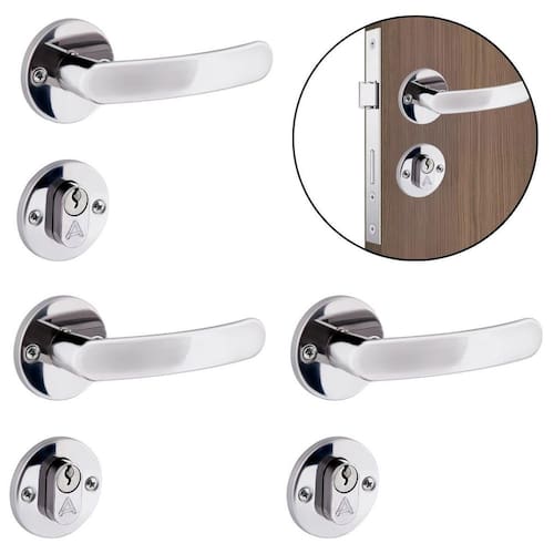 ESPECIFICAÇÕES TÉCNICAS Materiais: Aço carbono, aço inox, latão e zamac Uso indicado: Portas Externas Tráfego: Médio Segurança: Alta Compatibilidade: Portas de 25mm a 30mmAcabamento: Cromado Polido Garantia: 5 anos