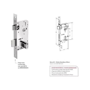 - Fechaduras Médio / Alto Padrão - Fechaduras Modelo 740/117 - A fechadura 740 são compostas por rosetas e maçanetas injetadasem inox, e maçanet tipo alavanca chata em Zamak. - O mecanismo de acionamento utilizado no produto é o atual mecanismo broca 40mm e eixo de 53mmconforme norma brasileira 14913. - Esta linha de fechaduras é fornecida em opção para porta externa, interna e banheiro, para a versãoexterna, é embalada com cilindro do tipo pinos (GII). - A aplicação destes modelos de fechaduras são portas em geral, que requerem um bom acabamentodos mecanismos e das guarnições. Ean: 7899105832110