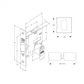 Marca: Stam Modelo: 1005 Acabamento: Black Rosetas: Quadradas Altura: 122 mm Largura: 22 mm Profundidade: 71 mm Distância entre furos: 73 mm Dimensão da roseta: 49 x 49 mm Espessura do cilindro: 18 mm Distância total do conjunto: 85 mm
