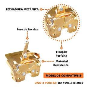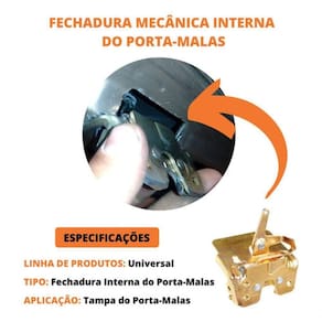 Fechadura Porta Malas Tampa Traseira Uno Uno Mille 95 A 2003 CONTEÚDO DA EMBALAGEM ------------------------------------------------- - Fechadura Interna Do Porta-Malas VEÍCULOS APLICÁVEIS