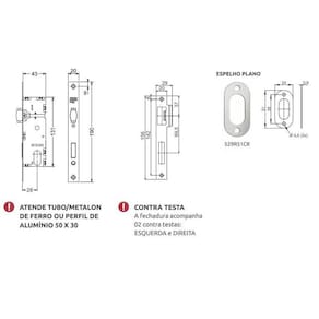 Fechadura 3F Pivotante Rolete 529 CRIdeal para Instalação em portas de Ferro, Madeira, Aluminio.Marca: 3FCor: CromadoBroca: 28mmNão acompanha PuxadorCaracterísticas: Distância de broca de 28mm; Indicadas para porta pivotante; Testa e contra testa em aço inox; Espelhos oblongos plano e design em aço inox; Chave, pino, contra-pino e rolete de latão; Disponível na aplicação externa.Diferenciais: Essa linha de produtos apresenta maior resistência e maior durabilidade; A máquina blindada evita a entrada de resíduos durante a instalação e a utilização do produto; Possui regulagem do rolete com avanço ou recuo; O cilindro Yale está disponível nos comprimentos 50, 74 e 90mm; Chave Yale produzida em latão; Acompanha duas contra testas para aplicação em porta com abertura direita ou esquerda; Esse produto repõe as demais marcas do mercado e atende a várias espessuras de porta.