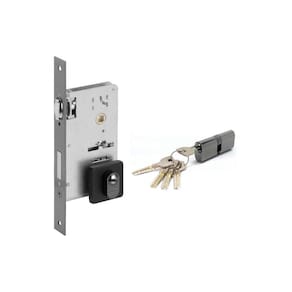 Anticorrosão individual. A regulagem da posição do rolete via parafuso na parte frontal, facilitando o acesso mesmo após a instalação. O trinco tem recolhimento através da chave e a lingueta acionada por sistema de gorges, que são compatíveis com cilindros europerfil.