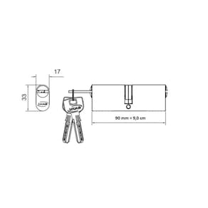 Descrição técnica: cilindro de segurança imab 4800. Cilindro duplo com pontos, segredos gerados por computador, com 6 pinos e contrapinos tipo carretel, com molas de aço inox, chaves em latão niqueladas e came duplo em aço sinterizado de padrão superior.